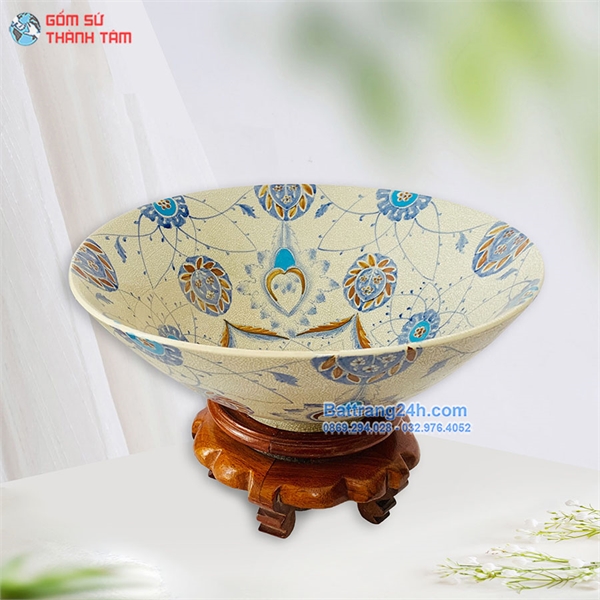 Chậu sứ rửa mặt men rạn hàng vẽ tay gốm Bát Tràng cao cấp