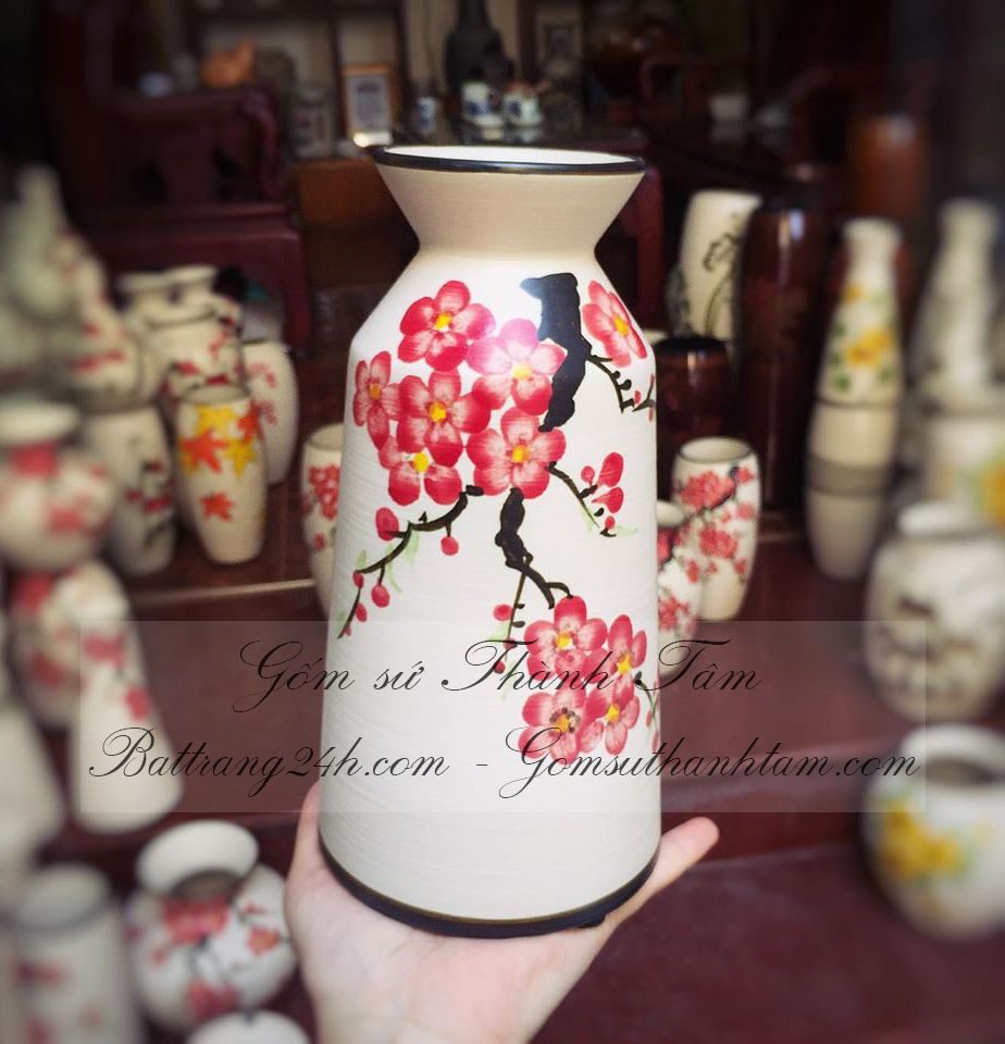 Mẫu lọ hoa gốm sứ Bát Tràng đẹp trang trí hoa đào cao cấp vẽ đẹp sắc nét tỉ mỉ chất lượng