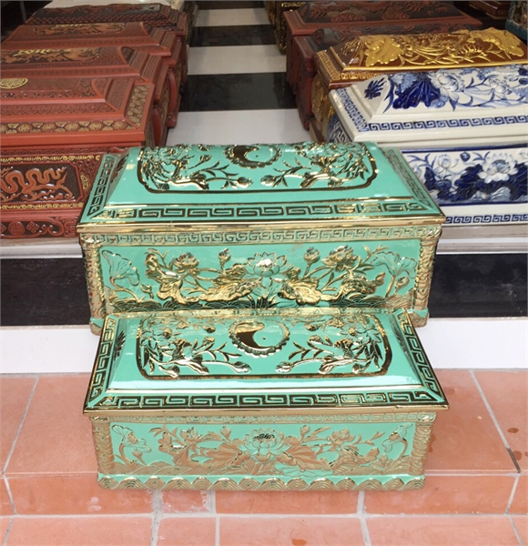 Nơi mua quách tiểu màu xanh ngọc vẽ vàng kim gốm sứ Bát Tràng cao cấp, hoa văn tỉ mỉ, sắc nét chuẩn phong thủy, chất lương tốt